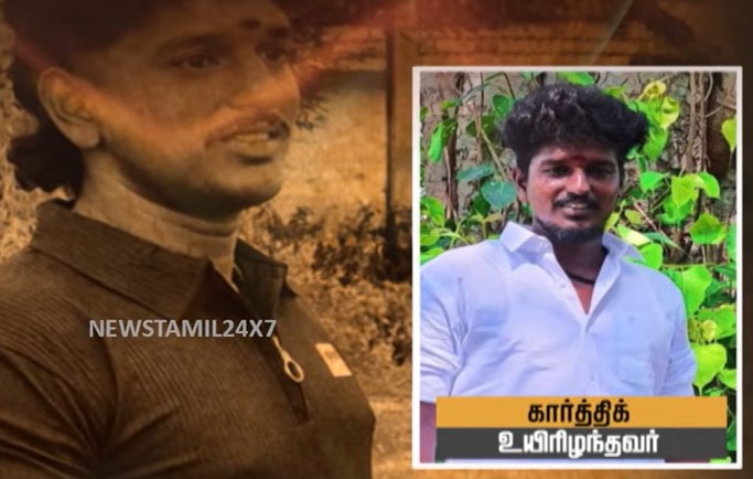 கிராமத்தில் நுழைவு வாயிலில் சடலமாக கிடந்த கார்த்திக்