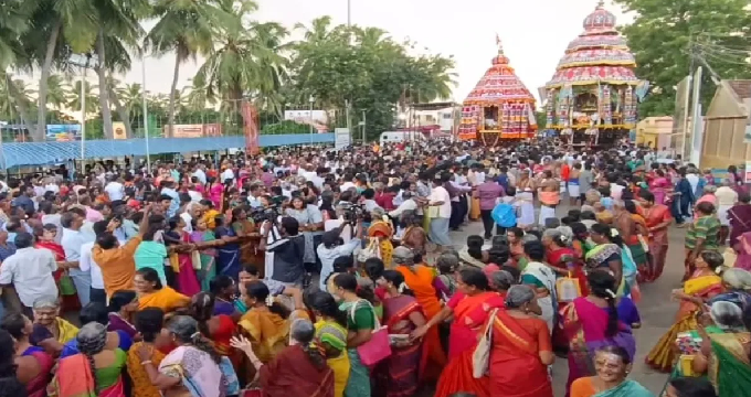 விழாவின் 9ஆம் நாளான நேற்று, பக்தர்கள் எதிர்பார்த்திருந்த தேரோட்டம் வெகு விமரிசையாக நடைபெற்றது.