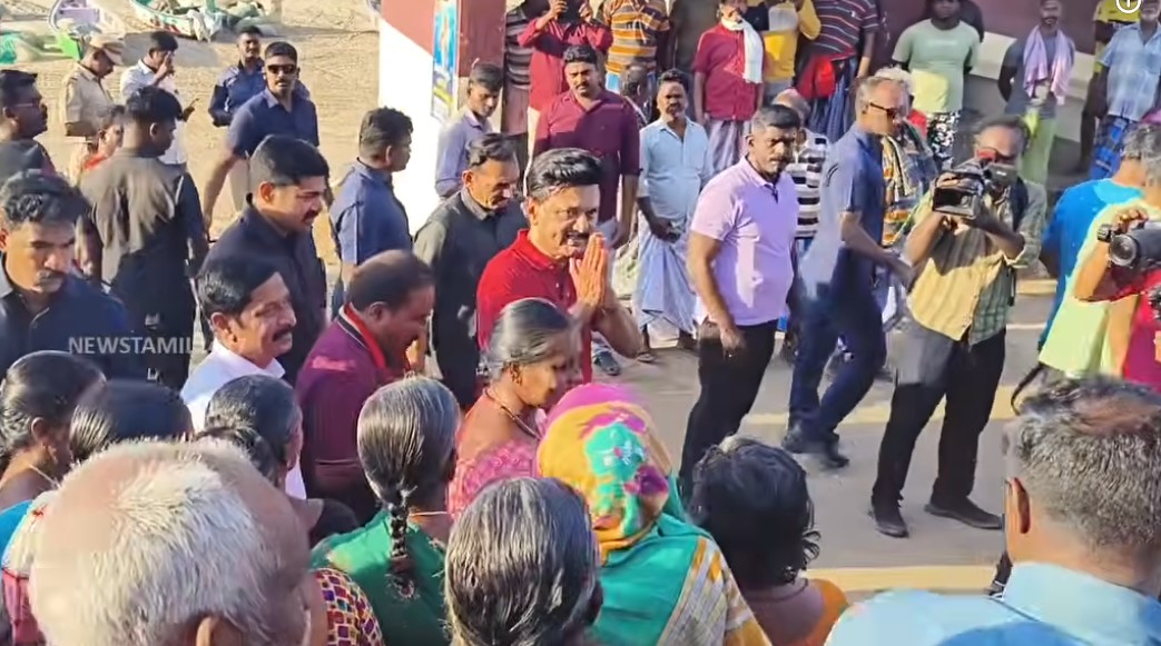 கன்னியாகுமரியில் உள்ள சூரிய அஸ்தமன பகுதியில் இருந்து கோவளம் தூண்டில் வளைவு வரை சுமார் ஒன்றரை கிலோ மீட்டர் தூரம், முதல்வர் மு.க.ஸ்டாலின் நடைபயிற்சி சென்றார். தூண்டில் வளைவு பகுதியில் மீனவர்கள் கடலில் பிடித்து வந்த மீன்களை வலையிலிருந்து பிரித்துக் கொண்டிருந்தனர்.