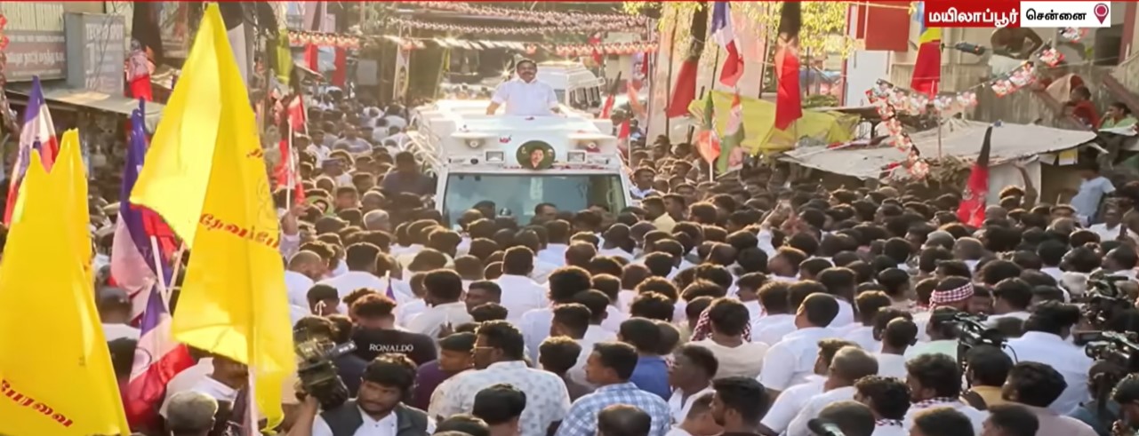 தமிழ்நாடு சட்டமன்ற தேர்தலுக்கான களம் சூடு பிடித்துள்ளது. காலையில் 23 தொகுதிகளுக்கு அதிமுக வேட்பாளர் பட்டியலை அறிவித்த எடப்பாடி பழனிசாமி, பிற்பகலில் NDA கூட்டணியில் யார் யாருக்கு எந்தெந்த தொகுதிகள் என்ற அறிவிப்பை வெளியிட்டார். தொடர்ந்து, மயிலாப்பூர் தொகுதியில் இருந்து தனது தேர்தல் பிரச்சாரத்தையும் தொடங்கினார். மயிலை கபாலீஸ்வரர் கோயிலில் சுவாமி தரிசனம் செய்த பின்னர் பிரச்சாரத்திற்கு புறப்பட்ட எடப்பாடி பழனிசாமிக்கு, வழிநெடுகிலும் மலர் தூவி உற்சாக வரவேற்பு அளிக்கப்பட்டது. அதிமுகவினர் தேங்காயில் கற்பூரம் ஏற்றி திருஷ்டி கழித்தும், துண்டுகளை தலைக்கு மேல் சுழற்றியும் ஆரவாரமாக வரவேற்பு அளித்தனர்.