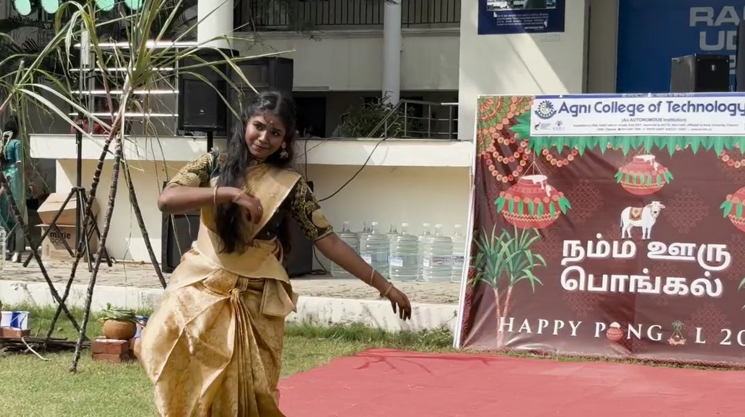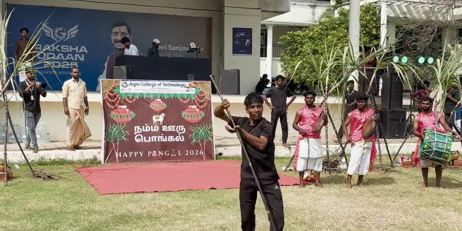 செங்கல்பட்டு மாவட்டம், தாழம்பூர் பகுதியில் இயங்கி வரும் அக்னி தனியார் பொறியியல் கல்லூரியில் சமத்துவ பொங்கல் விழா வெகு சிறப்பாக நடைபெற்றது. தமிழர்களின் பாரம்பரியத்தை பறைசாற்றும் வகையில் மாணவ, மாணவிகளும், பேராசிரியர்களும் வேட்டி, சேலை அணிந்து வந்து செங்கரும்பு வைத்து புதுப்பானையில் பொங்கல் வைத்து குலவையிட்டு மகிழ்ந்து ஒருவருக்கு ஒருவர் பொங்கல் வாழ்த்துக்களை தெரிவித்துக்கொண்டனர்.