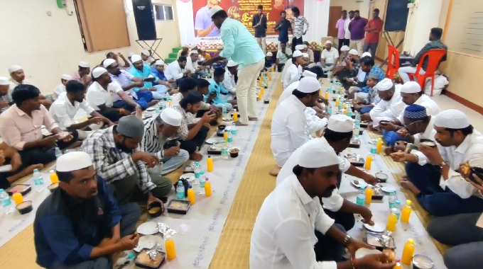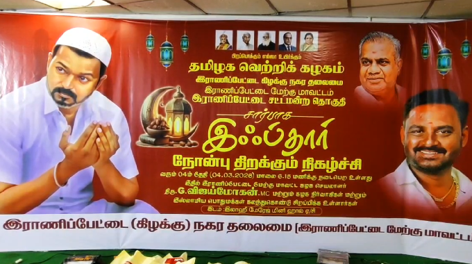 ஈகைப் பண்பையும் நல்லிணக்கத்தையும் போற்றும் புனித ரமலான் நோன்பு இஸ்லாமியப் பெருமக்களால் கடைப்பிடிக்கப்பட்டு வருகிறது. இந்த நிலையில் ராணிப்பேட்டை மேற்கு மாவட்ட தவெக கட்சியின் சார்பில் இஃப்தார் ரமலான் நோன்பு திறக்கும் நிகழ்ச்சி தனியார் திருமண மண்டபத்தில் ராணிப்பேட்டை நகர செயலாளர் சஞ்சய் ஏற்பாட்டில் நடைபெற்றது.