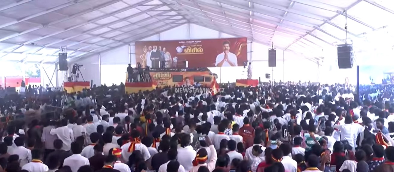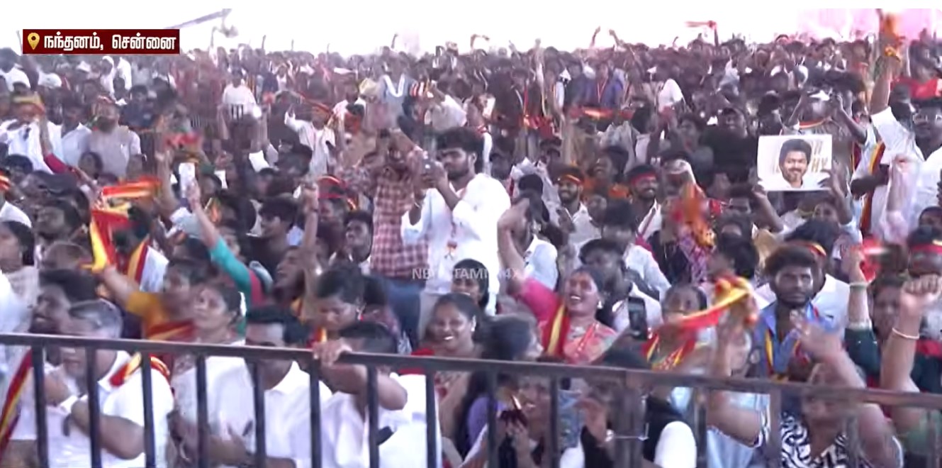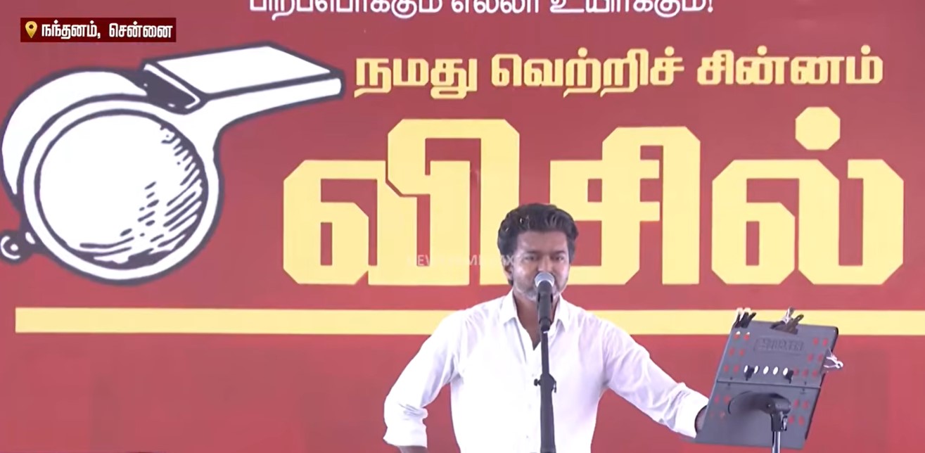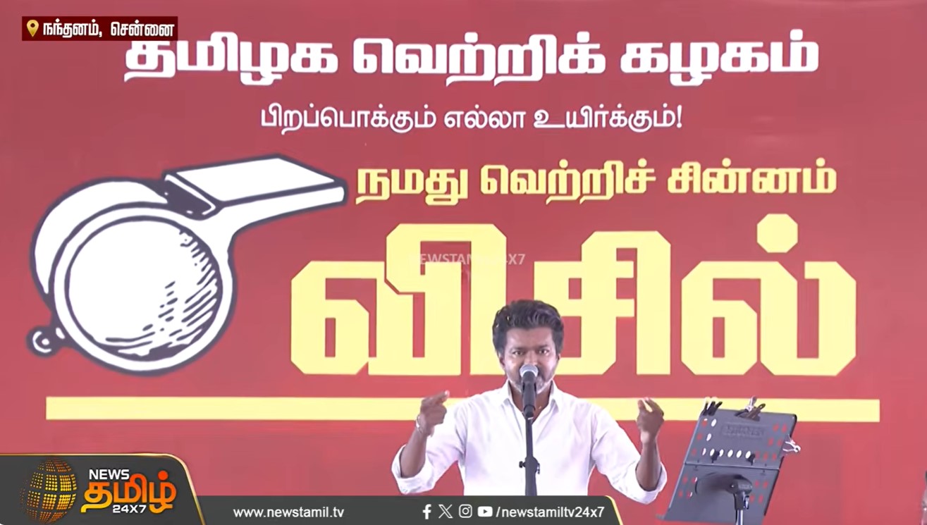 இவ்வாறு பேசி, தவெக தலைவர் விஜய் வாக்கு சேகரித்தார்.