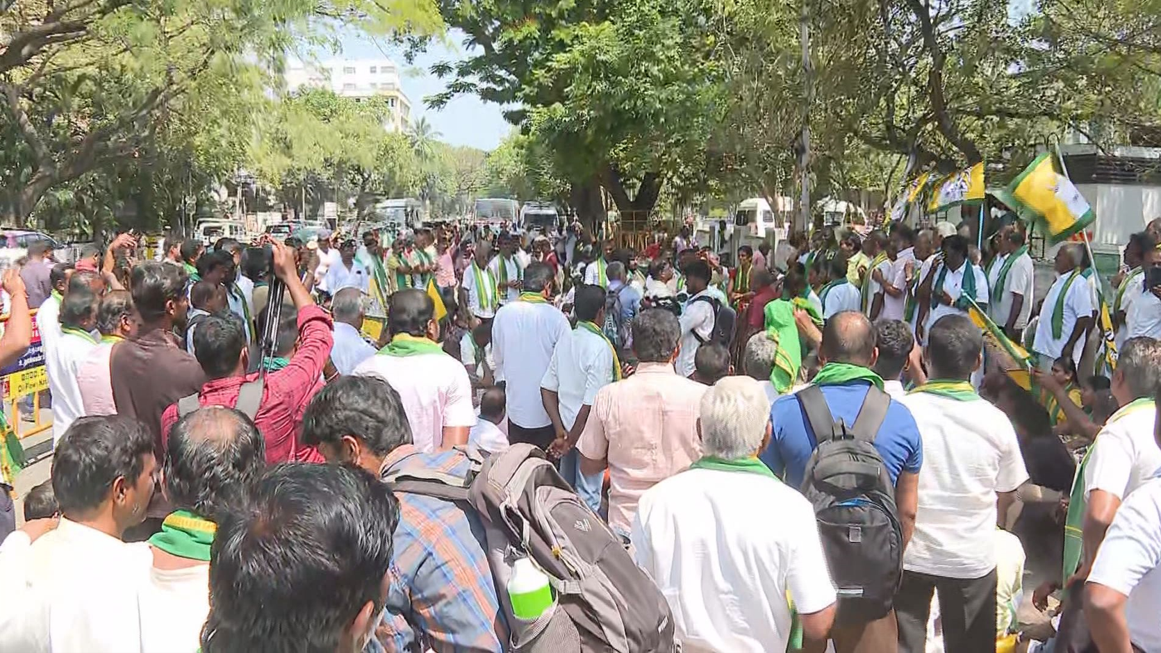 உள்ளிட்ட 10க்கும் மேற்பட்ட கோரிக்கைகளை வலியுறுத்தி தமிழக விவசாயிகள் பாதுகாப்பு சங்கத்தினர் போராட்டத்தில் ஈடுபட்டனர்.
