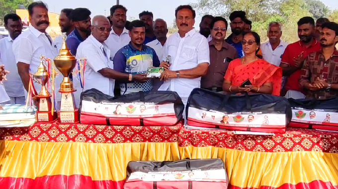 விளாப்பாக்கத்தில் கிரிக்கெட் விளையாடும் வீரர்களுக்கு அதிமுக ராணிப்பேட்டை மேற்கு மாவட்ட செயலாளர் S.M.சுகுமார் தனது சொந்த செலவில் 25,000 ரூபாய் பரிசு மற்றும் கிரிக்கெட் உபகரணங்கள் அடங்கிய 5 கிட்களை வழங்கி கௌரவித்தார். வட்ட அளவிலான கிரிக்கெட் போட்டிகள்விளாப்பாக்கம் பகுதியில் வட்ட அளவிலான கிரிக்கெட் போட்டிகள் நடைபெற்றது இந்த போட்டியில் பிற மாவட்டங்களிலிருந்து பல அணிகள் பங்கேற்ற நிலையில், வெவ்வேறு பிரிவுகளாக போட்டிகள் நடைபெற்றது.பரிசு வழங்கும் நிகழ்ச்சியில் நெகிழ்ச்சிபோட்டியில் வெற்றி பெற்ற அணிகளுக்கு பரிசு வழங்கும் நிகழ்ச்சியில் அதிமுக ராணிப்பேட்டை மேற்கு மாவட்ட செயலாளர் S.M.சுகுமார் கலந்து கொண்டு தனது சொந்த செலவில் வெற்றி பெற்ற அணிக்கு 25,000 ஆயிரம் ரூபாய் பரிசாக தொகை மற்றும் கிரிக்கெட் விளையாட்டு உபகரணங்கள் அடங்கிய 5 கிட் பேக்குகளை வழங்கினார்.ரூ.25,000 மதிப்பிலான 5 கிரிக்கெட் கிட் அப்போது நிகழ்ச்சியில் பேசிய அவர், இளைஞர்கள் இடையே போதைப்பழக்கம் அதிகரித்து வரும் சூழலில், வாழ்க்கையில் சாதிக்க இளைஞர்கள் விளையாட்டு துறையில் ஆர்வம் காட்ட வேண்டும் என்றும் இதன் மூலம் மனதையும் உடலையும் ஒருநிலைப்படுத்தி வாழ்வில் முன்னேற முடியும் என அறிவுரை வழங்கினார். Related Link மினி மாரத்தான் போட்டி