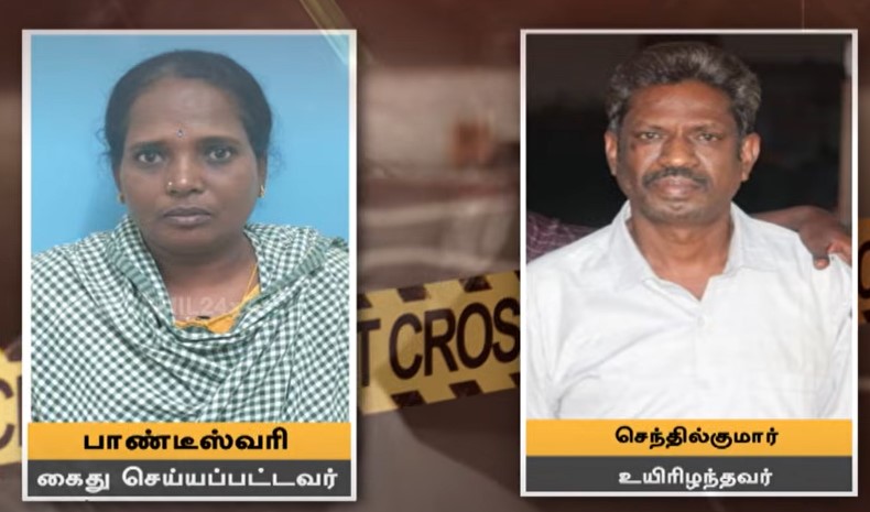இதக்கேட்டு கடுப்பான பாண்டீஸ்வரி, அது உங்களுக்கு பிறந்த பொண்ணே இல்லை, அதனால இந்த விஷயத்துல நீங்க தலையிட வேண்டாம்னு கத்திருக்காங்க. காரணம், 47 வயசான பாண்டீஸ்வரி ஏற்கெனவே ஒருவரை கல்யாணம் பண்ணி ஒரு மகள் பிறந்தபிறகு அவரை டைவர்ஸ் பண்ணிட்டுதான் ரெண்டாவதா செந்தில்குமாரை கல்யாணம் பண்ணிருக்காங்க. அவர, கல்யாணம் பண்ணினபிறகு ரெண்டு மகன்கள் பிறந்துருக்காங்க. இதுக்குமத்தியிலதான் மகளுக்கு வரன் பாத்துருக்காங்க பாண்டீஸ்வரி. அதனால, கணவன் கண்டிச்சத காதுல வாங்காம சமையல் மாஸ்டர்கிட்ட பேசுன பாண்டீஸ்வரிக்கு அவரோட தகாத உறவு ஏற்பட்ருக்குது. சமையல் மாஸ்டரோட அடிக்கடி வெளிய போன மனைவி பாண்டீஸ்வரியை ஒருநாள் கையும் களவுமா பிடிச்ச கணவன் செந்தில்குமார் ரெண்டுபேரையுமே வார்ன் பண்ணிருக்காரு. ஆனா, அந்த வார்னிங்கை ரெண்டுபேருமே கண்டுக்கல. இருந்தாலும், தகாத உறவுக்கு இடையூறா இருக்க செந்தில்குமாரோட கதையை முடிச்சிராலாம்னு ராஜமாணிக்கமும், பாண்டீஸ்வரியும் பிளான் பண்ணிருக்காங்க. அந்த பிளான்படி, செந்தில்குமாரை மது விருந்துக்கு கூப்டுருக்காரு ராஜமாணிக்கம்.