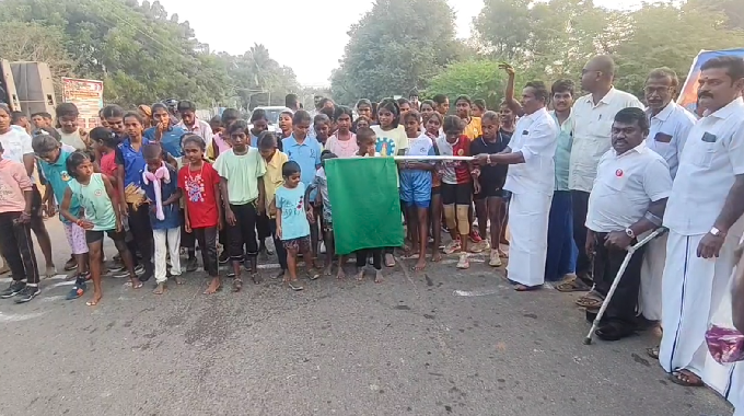 கீழச்சாக்குளம் கிராம திமுக கிளைக்கழகம் சார்பில் முதலமைச்சர் மு.க.ஸ்டாலின் 73-வது பிறந்த நாளை முன்னிட்டு நடைபெற்ற மினி மாரத்தான் போட்டி நடைபெற்றது. 5 கிலோ மீட்டர் தூரம் கொண்ட மினி மாரத்தானில் பெண்களும், 10 கிலோ மீட்டர் தூரம் கொண்ட மினி மாரத்தான் போட்டியில் ஆண்கள், சிறுவர், சிறுமிகள் என அனைவரும் கலந்து கொண்டனர்.