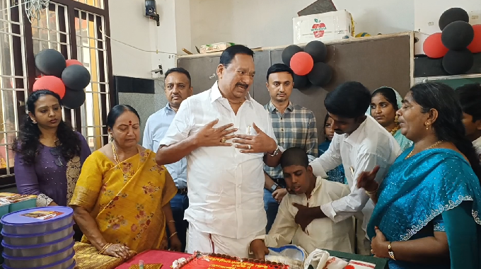 ராணிப்பேட்டை பகுதியில் மாற்றுத்திறனாளிகள் மற்றும் மன வளர்ச்சி குன்றிய மாணவர்களுக்கான சிறப்பு பள்ளியான விஸ்வாஸ் மனவளர்ச்சி குன்றிய பள்ளி செயல்பட்டு வருகிறது. இப்பள்ளியில் H.நூர்ஜகான் என்பவரின் 2 வது மகனான மாற்றுத்திறனாளி மாணவரான ஜாஃபர் பயின்று வருகிறார். சுமார் 28 ஆண்டுகள் கடந்த நிலையில் இன்று ஜாஃபரின் 30-வது பிறந்தநாள் என்பதால் அதனை கொண்டாடும் விதமாக விஸ்வாஸ் பள்ளியில் சிறப்பாக ஏற்பாடு செய்யப்பட்டிருந்தது.பிறந்த நாள் விழவில் குடும்பத்துடன் கலந்து கொண்ட அமைச்சர் ஆர். காந்தி ஜாஃபருடன் கேக் வெட்டி உற்சாகத்துடன் பிறந்த நாளை கொண்டாடி மகிழ்ந்தார். கண்கலங்கிய அமைச்சர் இதையடுத்து பிறந்தநாளில் கடந்த காலத்தை குறித்து அவரது தாயார் நூர்ஜகான் நிகழ்ச்சியில் பேசிக் கொண்டிருந்தபோது, அமைச்சர் ஆர். காந்தி இரு கைகளையும் கூப்பி கண் கலங்கியவரே சிறிது நேரம் நின்று விட்டு ஜாஃபரை பார்த்தபடி அங்கிருந்து புறப்பட்டு சென்றார். Related Link 6 மூத்த தம்பதியினருக்கு மரியாதை