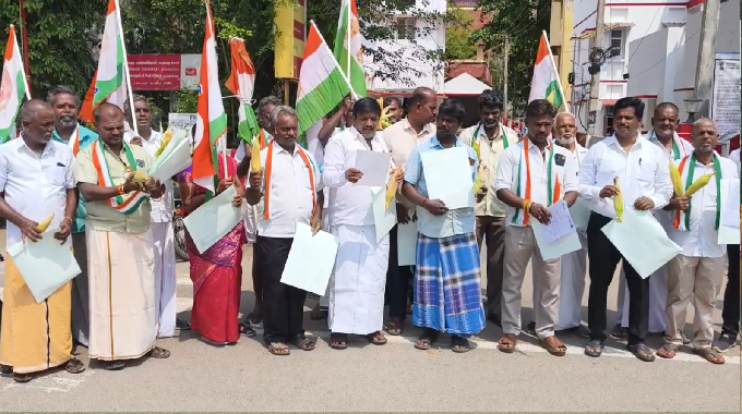 தலைமை தபால் நிலையம் முன்பு நடைபெற்ற ஆர்ப்பாட்டத்தில் அக்கட்சியின் வடக்கு மாவட்ட தலைவர் ராஜகோபால் தலைமையில் தங்களது கோரிக்கைகளை வலியுறுத்தி கண்டன கோஷங்களை எழுப்பினர். மேலும் தங்களது கோரிக்கை மனு மற்றும் மக்காச்சோள கதிர்களை தபால் நிலையம் மூலமாக தமிழக முதல்வருக்கு அனுப்பி வைத்தனர். இதில் தமிழ் மாநில காங்கிரஸ் கட்சி நிர்வாகிகள் மற்றும் விவசாய சங்க அமைப்பினர் பலர் கலந்து கொண்டனர்.