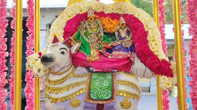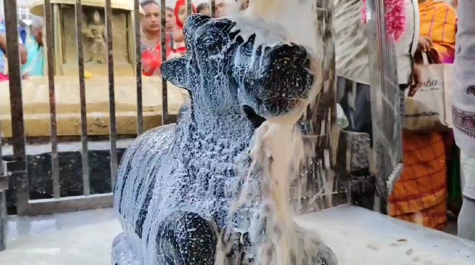 முன்னதாக கோயிலில் இருக்கும் நந்தி பகவானுக்கு பால், தயிர், மஞ்சள், தேன், சந்தனம், இளநீர், பஞ்சாமிர்தம், கரும்பு, ஜூஸ், அரிசி, மாவு, குங்குமம், கதம்பொடி, திருநீறு உள்ளிட்ட பல்வேறு வாசனை திரவியங்களை கொண்டு சிறப்பு அபிஷேகங்கள் நடைபெற்று மகா தீபாரதனை காண்பிக்கப்பட்டது.