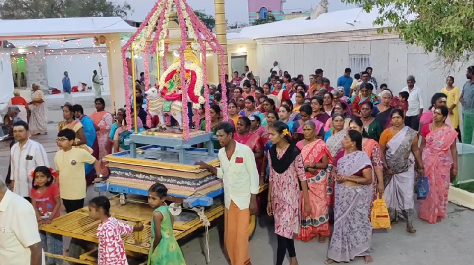 அதனைத்தொடர்ந்து பல்வேறு வகையான பூ மாலைகள் மற்றும் மலர்களால் அலங்கரித்து வைக்கப்பட்டிருந்த பிரதோஷ நாதரை கூடியிருந்த பக்தர்கள் அனைவரும் சிவபூதகன வாத்தியங்களுடன் நமச்சிவாய என பக்தி கோஷங்களை எழுப்பி கோயிலை முழுவதும் வலம் வந்து பிரதோஷ நாதர் முன்பாக பெண்கள் ஆண்கள் என பலர் சிவபுராணம் தேவாரம் உள்ளிட்ட சிவ பாடல்களை பாடியபடி சிவனை மனதில் நினைத்தவாறு பக்தி பரவசத்துடன் சுவாமியை வழிபட்டு சென்றனர்.
