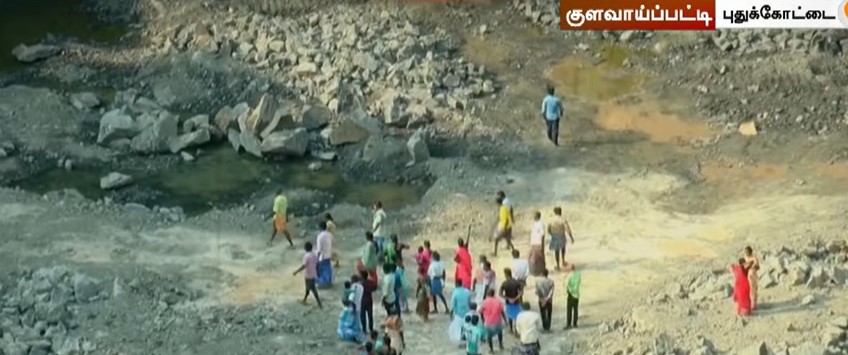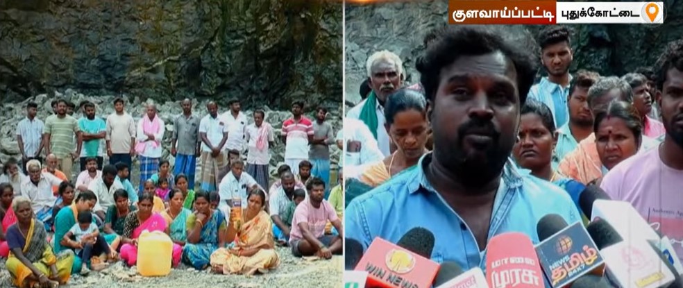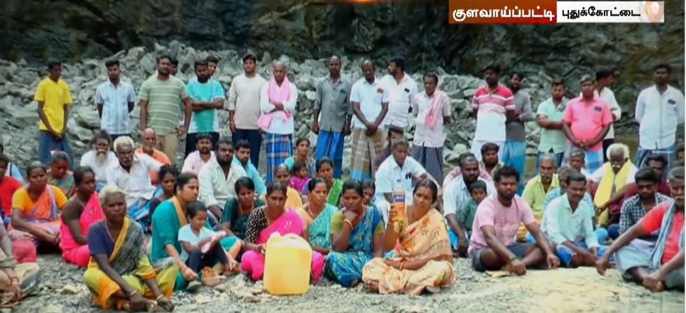 புதுக்கோட்டை மாவட்டம், குளவாய்ப்பட்டி கிராமத்தில் வாரியை ஆக்கிரமித்து சுவேதா கிரஷர் நிறுவனம் நடத்தி வரும் கல்குவாரி ஊரையே சின்னாபின்னமாக ஆக்கிய நிலையில், மீண்டும் புதிய கல்குவாரி அமைக்க எதிர்ப்பு தெரிவித்து, கிராம மக்கள் பெட்ரோல், டீசல் கேனுடன் குடியேறும் போராட்டத்தில் ஈடுபட்டனர். நான்கு ஆண்டுகளாக பொறுத்துப் பொறுத்து பார்த்த மக்கள், அரசின் கவனத்தை ஈர்க்கும் வகையில் குவாரிக்குள் இறங்கி போராடினர். * குளவாய்ப்பட்டி கிராமத்தில் வாரியை ஆக்கிரமித்து கல்குவாரி * 200 அடி ஆழத்துக்கு கற்களை வெட்டியெடுக்கும் நிறுவனம்? புதுக்கோட்டை மாவட்டம், கிள்ளுக்கோட்டை அருகே குளவாய்ப்பட்டி குக்கிராமம் உள்ளது. இந்த கிராமத்தின் குளத்துக்கு செல்லும் குவாரியை, சுவேதா என்ற கிரஷர் நிறுவனம் கைப்பற்றி வைத்துக்கொண்டு 200 அடி ஆழத்துக்கு சட்டவிரோதமாக கற்களை வெட்டியெடுப்பதாக சொல்லப்படுகிறது. கற்களை வெட்டி எடுக்க எடுக்க குவாரியை சுற்றியுள்ள மலையடிப்பட்டி, அய்யாபட்டி, வெள்ளபிள்ளையார்பட்டி, மேலப்பட்டி, ராசா பட்டி, செங்களுர் விசலூர் உள்ளிட்ட பிற பகுதிகளில் நிலத்தடி நீர் குறைந்து வறண்டு உள்ளதாக சொல்லப்படுகிறது. குவாரியில் பயன்படுத்தப்படும் வெடிமருந்துகளால் குடிநீர் மாசு ஏற்பட்டு சிறுநீரக பிரச்சனை, சுவாச பிரச்சனை ஏற்படுவதாக மக்கள் வேதனையை தெரிவிக்கின்றனர். * குவாரியை சுற்றியுள்ள கிராமங்களில் ஏற்பட்ட வறட்சி * வெடிமருந்துகளால் குடிநீர் மாசடைந்து சிறுநீரக, சுவாச பிரச்சனைஇந்நிலையில் தான், குவாரிக்கு 100 மீட்டர் தூரத்தில் 6 ஏக்கரில் மற்றொரு கல்குவாரி அமைக்க அரசு அனுமதி வழங்கிய நிலையில், அது சம்பந்தமாக பொதுமக்களிடம் கருத்துகளை கேட்க கீரனூர் காவல்நிலைய துணை கண்காணிப்பாளர் அலுவலகத்தில் ஆலோசனைக் கூட்டம் நடைபெற்றது. அப்போது மக்களிடம் கருத்து கேட்பதை விடுத்து குவாரி நிர்வாகத்துக்கு ஆதரவாக செயல்பட்டு போலீசார் அடாவடியாக நடந்து கொண்டதாக கிராம மக்கள் குற்றம்சாட்டியுள்ளனர். இதுதொடர்பாக, பிரச்சனையை இழுத்தால் கைது செய்வோம் எனவும் மிரட்டி மக்களை அச்சுறுத்தியதாக சொல்லப்படுகிறது. இதனை கண்டித்து மக்கள் குவாரிக்கு பெட்ரோல், டீசல் கேனுடன் குடியேறும் போராட்டத்தில் ஈடுபட்டனர். * குவாரிக்கு 100 மீட்டர் தூரத்தில் 6 ஏக்கரில் புது கல்குவாரி அமைக்க அனுமதி* குவாரி நிர்வாகத்துக்கு ஆதரவாக செயல்பட்டு காவல்துறை அடாவடிமுன்பெல்லாம் குவாரியில் அதிகளவில் மீன் வகைகள் இருக்கும் நிலையில் தற்போது அந்த குவாரியை சீரழித்து விட்டதாக குற்றம்சாட்டும் மக்கள், குவாரி நீரை குடித்தாலே கால்நடைகள் இறந்துவிடுவதாக குமுறினர். இந்த குவாரியை மூடுவதற்கு 