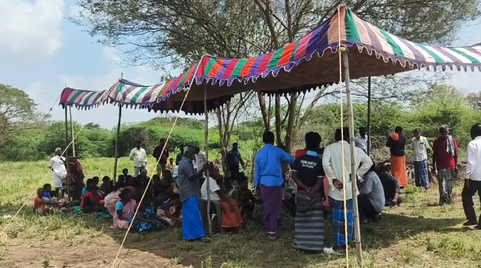 மயிலாடுதுறை அருகே சேந்தங்குடியில் அனுமதிக்கப்பட்ட இடத்தில் பட்டா வழங்க வலியுறுத்தி அப்பகுதி மக்கள் கொளுத்தும் வெயிலையும் பொருட்படுத்தாமல் டென்ட் அமைத்து காத்திருப்புப் போராட்டத்தில் ஈடுபட்டனர். மேலும் தீர்வு கிடைக்கும் வரை போராட்டம் தொடருவோம் என அறிவித்துள்ளனர்.