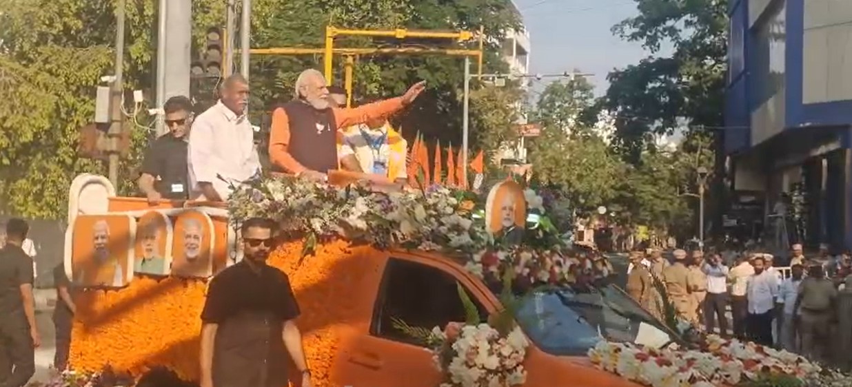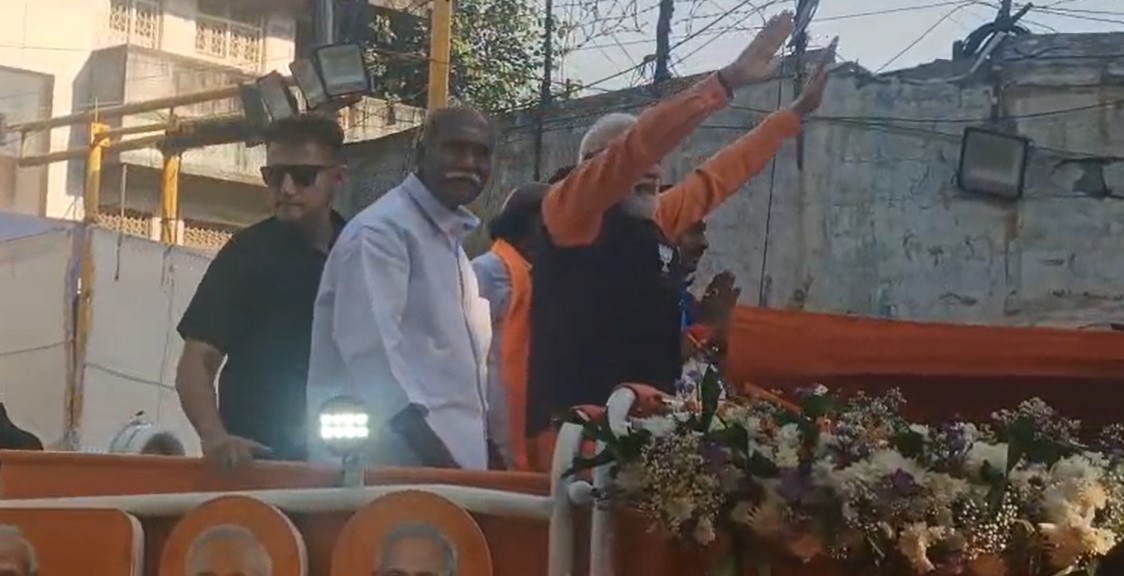 புதுச்சேரியில், பிரதமர் மோடி சுமார் 2 கிலோ மீட்டர் தூரம் ரோடு ஷோ சென்றார். முதலமைச்சர் ரங்கசாமி உள்ளிட்டோருடன் சென்று வாக்கு சேகரிப்பில் ஈடுபட்டார்.