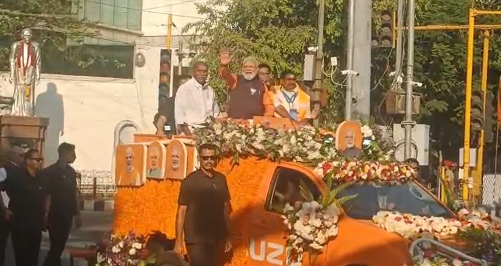 புதுச்சேரி முதலமைச்சர் ரங்கசாமியுடன் பிரதமர் நரேந்திர மோடி மக்களை சந்தித்து, உற்சாகமாக கையசைத்தபடி சாலையில் பேரணியாக சென்றார். சாலையோரம் நின்றிருக்கும் புதுச்சேரி மக்கள் பிரதமர் மோடிக்கு உற்சாக வரவேற்பு அளித்தனர். சட்டப்பேரவைத் தேர்தலில் போட்டியிடும் தேசிய ஜனநாயக கூட்டணி வேட்பாளர்களுக்கு ஆதரவு திரட்ட, பிரதமர் மோடி புதுச்சேரியில் பிரசாரத்தில் ஈடுபட்டுள்ளார்.