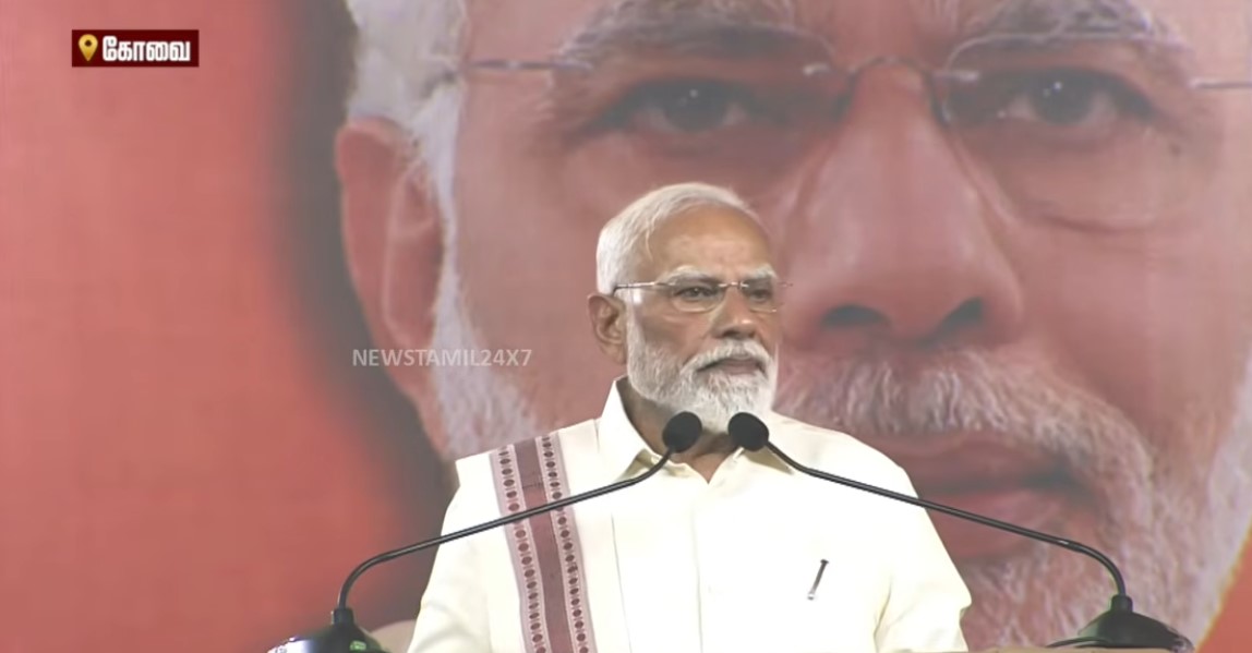 தமிழகத்தில் வரும் 23ஆம் தேதி சட்டமன்றத் தேர்தல் நடைபெற உள்ள நிலையில், தேசிய ஜனநாயக கூட்டணி வேட்பாளர்களை ஆதரித்து பிரதமர் மோடி கோவை கொடீசியா மைதானத்தில் பிரச்சாரம் செய்தார்.