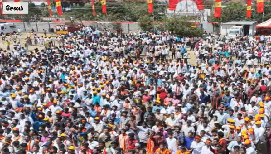 தவெக நிா்வாகிகள் சந்திப்பு, தோ்தல் பிரசாரக் கூட்டம், சேலம் மாவட்டம் சீலநாயக்கன்பட்டி, கேவிபி காா்டன் உள் வளாகத்தில் இன்று பிப்ரவரி 13ஆம் தேதி நடைபெற்றது. இந்த கூட்டத்தில் விஜய் பேசியதாவது;