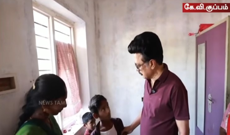 வேலூர் மாவட்டம், கே.வி.குப்பத்தில், கலைஞர் கனவு இல்லம் திட்டத்தில் பயன் பெற்ற பெண்ணிடம் முதல்வரும், திமுக தலைவருமான மு.க.ஸ்டாலின் நேரில் உரையாடினார். இது தொடர்பான வீடியோவை தனது எக்ஸ் தளத்தில் அவர் பதிவிட்டுள்ளார்.