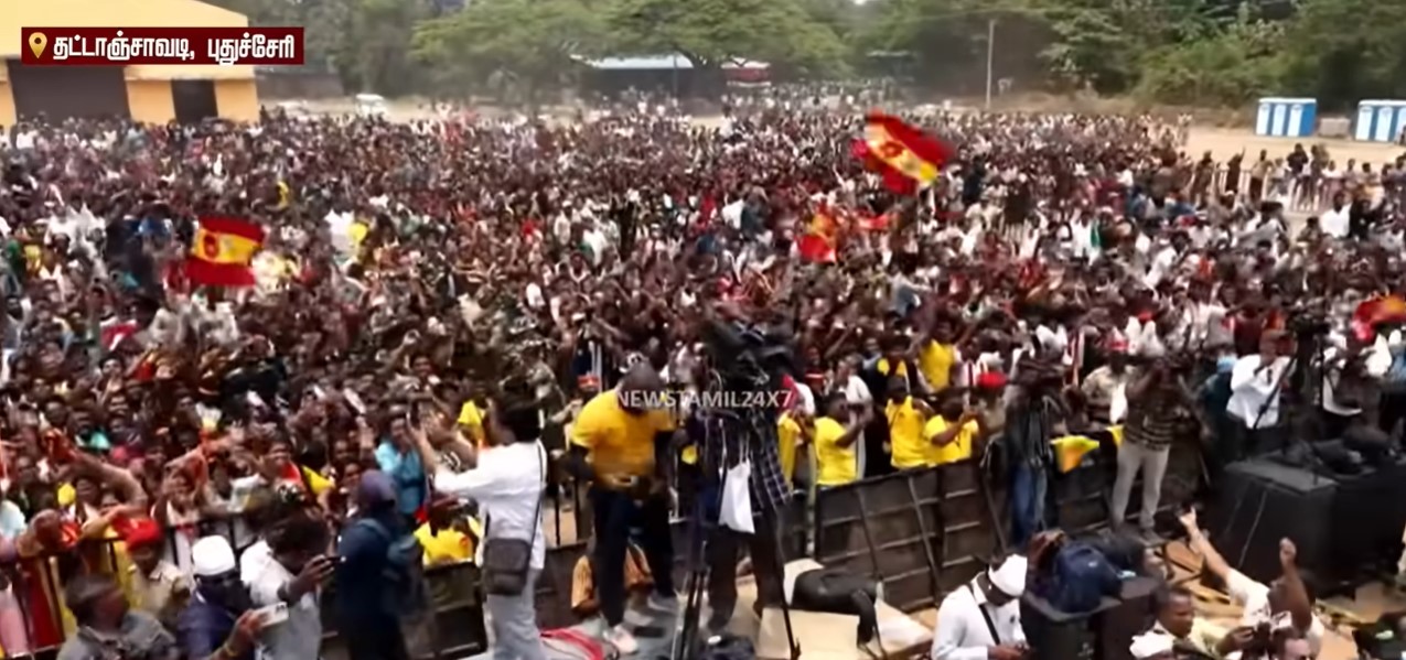 புதுச்சேரியில் மொத்தம் மூன்று இடங்களில் விஜய் பேச திட்டமிட்டு இருந்த நிலையில், கூட்டம் காரணமாக ஒரு இடத்தில் மட்டும் விரிவாக பேசிய விஜய், மற்ற இரண்டு இடங்களிலும் விசில் சின்னத்திற்கு ஓட்டுப் போடுங்கள் என சுருக்கமாக முடித்துக் கொண்டார்.