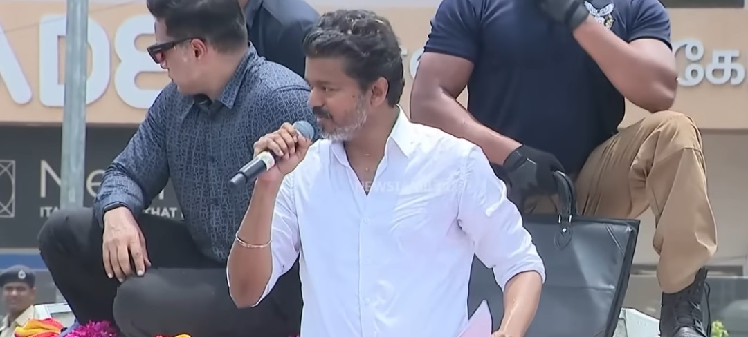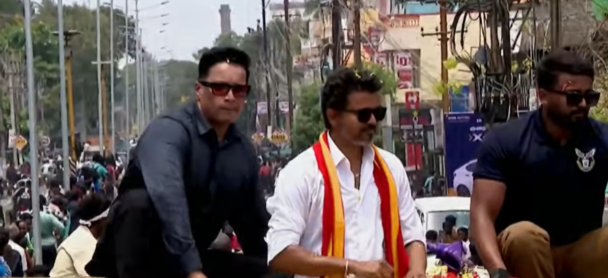 ஓடும் காரின் முன்பகுதியில் ஏறிய தொண்டர்கள் சிலரை பவுன்சர்கள் அப்புறப்படுத்தினர். அதேபோல, புதுச்சேரிக்குள் ரோடு ஷோ சென்று கொண்டிருக்கும் போது பிரச்சார வாகனம் மீது ஏற முயன்ற தொண்டரை, பவுன்சர்கள் அப்புறப்படுத்தினர்.