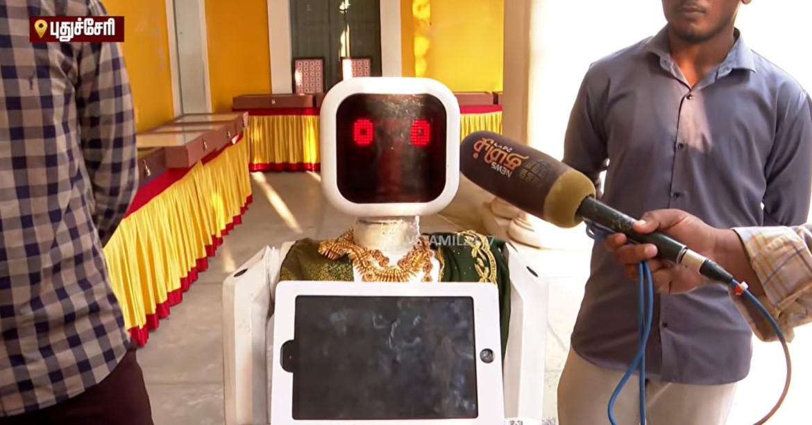 புதுச்சேரி ராஜ்பவன் தொகுதியில் ஓட்டுப்போட வந்த வாக்காளர்களை பாவாடை தாவணி அணிந்து வரவேற்ற ரோபோட் நிலா அனைவரையும் கவர்ந்தது. விழிப்புணர்வை ஏற்படுத்தும் வகையில் தேர்தல் ஆணையம் இதற்கு ஏற்பாடு செய்திருந்தது.