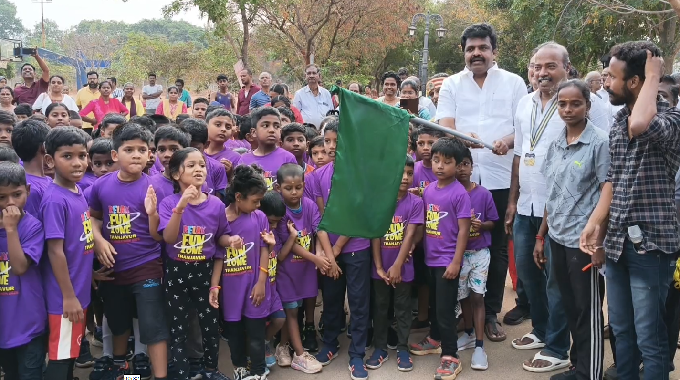 போனை ஓரம் வை !! கிரவுண்டுல கால வை!! என வாசகத்துடன் சிறு வயதினிலே குழந்தைகளுக்கு விளையாட்டின் மீது ஆர்வத்தை ஏற்படுத்தும் விதத்தில் மாரத்தான் போட்டி உற்சாகமாக நடைபெற்றது. மாரத்தான் போட்டியினை தஞ்சை மாநகராட்சி மேயர் சன் ராமநாதன் கொடியசைத்து துவக்கி வைத்தார்.