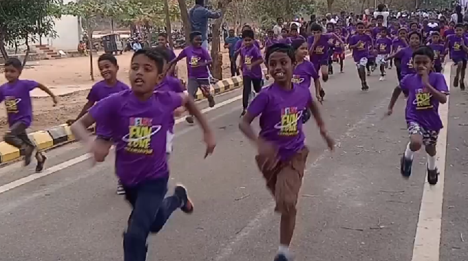 குழந்தைகள் செல்போன் பயன்படுத்துவதை தவிர்த்து விளையாட்டில் ஈடுபட வேண்டும் என்ற விழிப்புணர்வு ஏற்படுத்தும் வகையில் தஞ்சை மிட்டவுன் ரோட்டரி சங்கம் மற்றும் லாங்மால நிறுவனத்துடன் இணைந்து தஞ்சை சத்யா விளையாட்டு அரங்கில் குழந்தைகளுக்கான மாரத்தான் போட்டிகளை நடத்தியது.