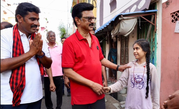 சிவகங்கை மாவட்டம் திருப்பத்தூரில் பிரச்சாரத்தை முடித்துக் கொண்டு பரமக்குடியில் உள்ள தனியார் மஹாலில் முதல்வர் தங்கினார். இன்று காலை பரமக்குடியில் நடைபயிற்சி மேற்கொண்ட மு.க.ஸ்டாலின், பரமக்குடி தொகுதிக்கு உட்பட்ட பரமக்குடி காந்தி சிலை, பெரிய பஜார் பகுதிகளில் பொது மக்களிடமும், எமனேஸ்வரம் பகுதியில் பொது மக்களையும் சந்தித்து திமுக வேட்பாளருக்கு வாக்கு சேகரித்தார். முதல்வர் மு.க.ஸ்டாலின் உடன் பொது மக்கள் கைகுலுக்கி, செல்ஃபி, புத்தகங்களை வழங்கி மகிழ்ந்தனர்.