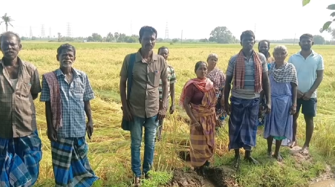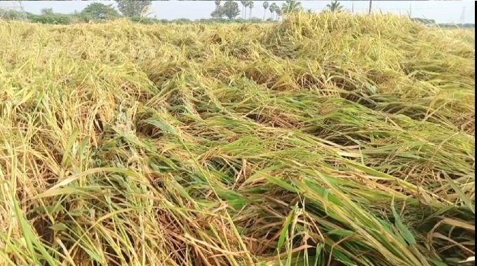 இன்னும் பத்து தினங்களில் அறுவடை செய்ய வேண்டிய நெற்பயிர்கள் பருவம் தவறி பெய்த மழையினால் நெற்பயிர்கள் முற்றிலுமாக மழை நீரில் மூழ்கி சேதம் அடைந்துள்ளது. பருவும் தவறி பெய்த மழையினால் நெல் பயிர்கள் அனைத்தும் நீரில் மூழ்கி தரையோடு சாய்ந்து கிடக்கின்றது குளத்தில் போதிய அளவு தண்ணீர் இல்லாமல் பற்றாக்குறை ஏற்பட்டதால் வாடகைக்கு தண்ணீர் பாய்ச்சி நெல் பயிர்களை அறுவடை தயாராக வைத்திருந்தோம், பெய்த மழையினால் வயலுக்குள் மழை நீர் தேங்கி நெற்பயிர்கள் அனைத்தும் தண்ணீரில் மூழ்கி தரையோடு சாய்ந்துள்ளது.