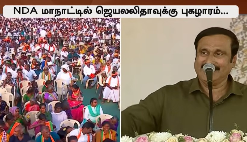 Related Link ''அவதூறு பரப்பும் ஊழல் கட்சி திமுக'' சமூக நீதி என்றால் பிரதமர் மோடி தான் என்று புகழாரம் சூட்டிய பாமக தலைவர் அன்புமணி, ஜெயலலிதா மட்டும் இல்லை என்றால் 69 சதவீத இடஒதுக்கீடு கிடையாது என்று பெருமிதம் தெரிவித்தார். திமுகவுக்கும், சமூக நீதிக்கும் எள்ளளவு கூட தொடர்பு கிடையாது என்று கடுமையாக சாடியுள்ள நிலையில், மதுரையில் நடைபெற்ற என்.டி.ஏ. மாநாட்டில் அவர் பேசியது என்ன? என்பதை தற்போது விரிவாக பார்க்கலாம்.மதுரையில் பொதுக்கூட்டம் மதுரையில் நடைபெற்ற தேசிய ஜனநாயகக் கூட்டணி பொதுக்கூட்டத்தில் பா.ம.க. தலைவர் ராமதாஸ் பேசியதாவது;தமிழ்நாடு சமூக நீதியின் பிறப்பிடம். ஆனால், 5 ஆண்டு காலத்தில் திமுக அரசு, 100 அடி பள்ளத்தை தோண்டி அதில் முழுமையாக சமூக நீதியை புதைத்துவிட்டது. அதற்கு தமிழக மக்கள் முதல்வரை நிச்சயமாக ஒருபோதும் மன்னிக்க மாட்டார்கள். கடந்த ஆறாண்டு காலத்தில் சமூக நீதியில் இந்திய அளவில் பெரிய சாதனைகளை மோடி செய்துள்ளார். சமூக நீதி என்றால் பிரதமர் மோடிபாஜக ஆளும் பீகார் மாநிலத்தின் தான் இந்தியாவில் முதல் முறையாக சாதிவாரி கணக்கெடுப்பு நடத்தி தரவுகளை வெளியிட்டு அதற்கு ஏற்ப சமூக நீதி திட்டங்களை வழங்கி இட ஒதுக்கீட்டை உயர்த்தியது. ஆனால், சமூக நீதியின் பிறப்பிடமான தமிழ்நாட்டில் அது நடைபெற்று இருக்க வேண்டும். சாதி வாரி கணக்கெடுப்புசாதி வாரி கணக்கெடுப்பு நடத்துங்கள் என்று, கடந்த 5 ஆண்டு காலத்தில் முதல்வர் ஸ்டாலினை எத்தனை முறை நாங்கள் கேட்டு இருக்கிறோம். இந்த கணக்கெடுப்பு ஏதோ சாதி வாரி கணக்கெடுப்பு இல்லை. உங்களுக்கு பெயர் பிடிக்கவில்லை என்றால் சமூக நீதி கணக்கெடுப்பு என வைத்துக்கொள்ளுங்கள். சாதி வாரி கணக்கெடுப்பு நடத்த அதிகாரம் இல்லை என்று சட்டமன்றத்தில் முதல்வர் பொய் சொல்கிறார். NDA மாநாட்டில் ஜெயலலிதாவுக்கு புகழாரம் காவிரி குண்டாறு திட்டம் 60 ஆண்டுகளாக நிறைவேறவில்லை. இந்தியாவிலே தமிழ்நாட்டுக்கு மட்டும் தான் 69 சதவீத இடஒதுக்கீடு கிடைத்துள்ளது. இதை பாதுகாத்த ஒரே ஒரு நபர் முன்னாள் முதல்வர் ஜெயலலிதா தான். அந்த அம்மா இல்லை என்றால் 69 சதவீத இடஒதுக்கீட்டையும் உச்சநீதிமன்றம் ரத்து செய்திருக்கும் இவ்வாறு அன்புமணி பேசினார். Related Link ''ஊழலில் போட்டி போடும் மினிஸ்டர்ஸ்''