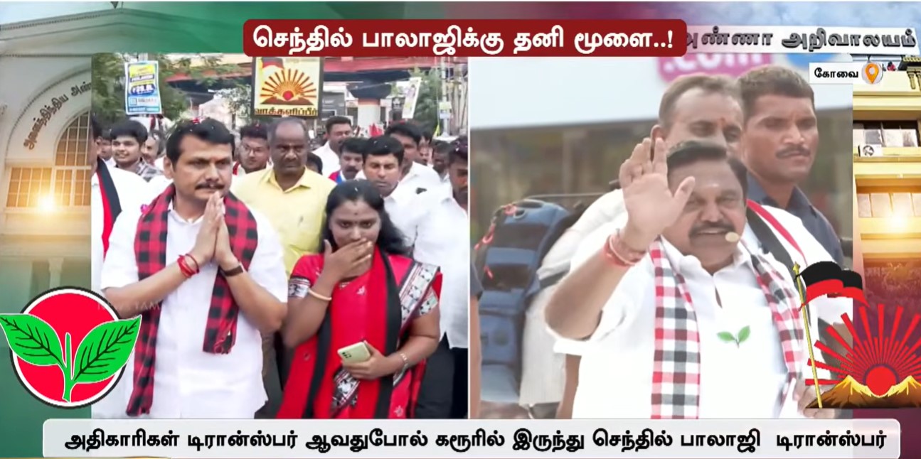 வேட்பாளர் அறிமுக கூட்டத்தில் சொந்த சின்னத்தையே மறந்துபோன ஒருவரிடம் மீண்டும் நாட்டைக் கொடுத்தால் உருப்படுமா? என கேள்வி எழுப்பி உள்ள எடப்பாடி பழனிசாமி, அதிகாரிகள் டிரான்ஸ்பர் ஆவதுபோல் கரூரில் இருந்து கோவை தெற்கிற்கு டிரான்ஸ்பர் ஆகி வந்துள்ள செந்தில் பாலாஜி கொரோனா வைரஸைவிட மோசமானவர் என விமர்சனம் செய்துள்ளார். கோவையில் பிரச்சாரம் மேற்கொண்ட இபிஎஸ், மலை மீது மோதினால் மண்டைதான் உடையும் என பிரதமர் மோடியுடன் மோதும் முதலமைச்சர் மு.க.ஸ்டாலினுக்கு அட்வைஸ் வழங்கியுள்ளார்.