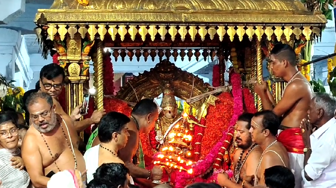 ஏழாம் திருவிழாவான இன்று காலை 1 மணிக்கு நடை திறக்கப்பட்டது. 1:30 மணிக்கு விஸ்வரூப தீபாராதனையும், 2 மணிக்கு உதயமார்த்தாண்ட அபிஷேகமும் நடைபெற்றது. காலை 10 மணிக்கு பிள்ளையன் கட்டளை மண்டபம் வந்த சுவாமி சண்முகருக்கு பல வகையான சிறப்பு அபிஷேகம் நடைபெற்றது. மாலையில் சுவாமி சண்முகருக்கு அலங்காரமாகி, மகா தீபாராதனை நடைபெற்றது. அதனைத் தொடர்ந்து சுவாமி சண்முகர் சிவன் அம்சமாக சிவப்பு சாத்தி கோலத்தில் தங்கச் சப்ரத்தில்