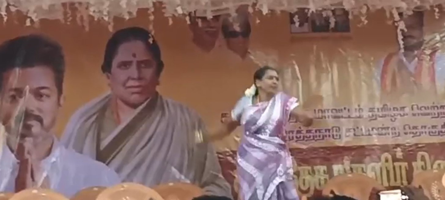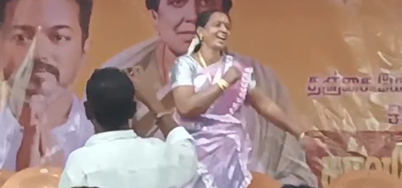 ஒரத்தநாடு பகுதியில் கடந்த சில நாட்களுக்கு முன்பு, தமிழக வெற்றி கழகம் சார்பில், மகளிர் தின விழா கொண்டாடப்பட்டது. இதில் கலந்து கொண்ட தலைமை ஆசிரியை கிருஷ்ண வேணி, விழா மேடையில் சினிமா பாடலுக்கு நடனமாடினார். இவர் நடனம் ஆடிய வீடியோ சமூக வலைதளங்களில் வைரலாகி வருகிறது.