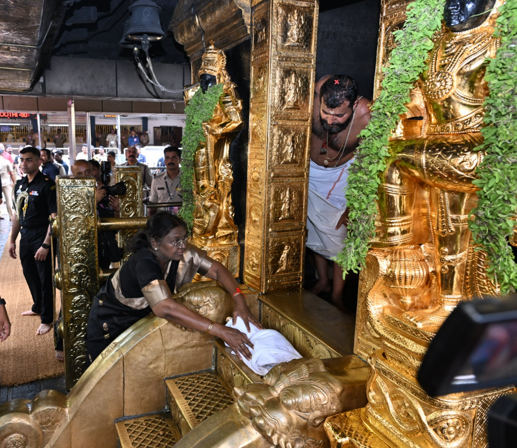 குடியரசுத் தலைவரின் வருகையால், சாமி தரிசனம் செய்வதற்காக தேவசம் போர்டு சார்பில் பிரத்யேக ஏற்பாடு செய்யப்பட்டு இருந்தது.
