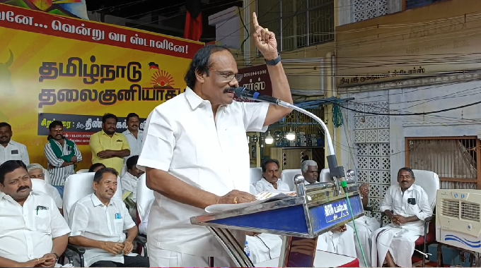 தமிழை கொச்சைப்படுத்தியது இறைவனாக இருந்தாலும் எதிர்த்துப் பேசும் தமிழ் புலவர்கள் தமிழ்நாட்டில் வாழ்ந்துள்ளதாக கூறினார்.மேலும் அவர் பேசுகையில் அதிமுக தலைமையில் தமிழகத்தில் அமைக்கப்பட்டிருக்கும் என்.டி.ஏ. கூட்டணி என்பதற்கு மறு பெயர் தேசிய துரோகிகள் கூட்டணியாகும் எடப்பாடி பழனிச்சாமி சசிகலாவுக்கு துரோகம் செய்தார், டிடிவி தினகரன் சசிகலாவுக்கு துரோகம் செய்தார், ஜி.கே. வாசன் ஜி.கே. மூப்பனாருக்கு துரோகம் செய்தார், பாட்டாளி மக்கள் கட்சி அன்புமணி அவரது சொந்த தந்தைக்கு துரோகம் செய்தார் இவ்வாறு துரோகிகளாக சேர்ந்து கட்டமைத்த கூட்டணி தமிழகத்தில் வெற்றி பெறாது என்று கூறினார்.