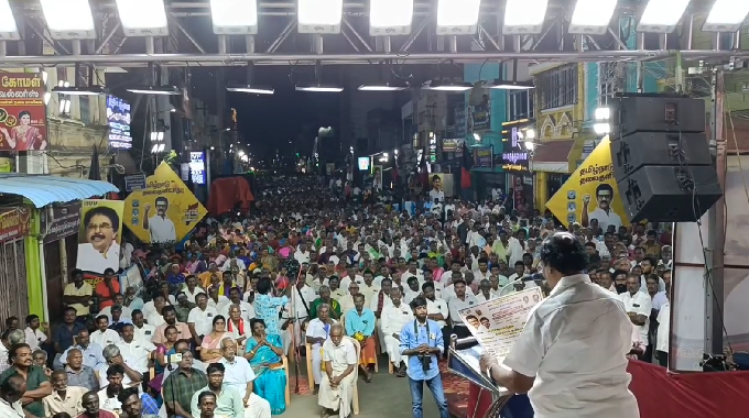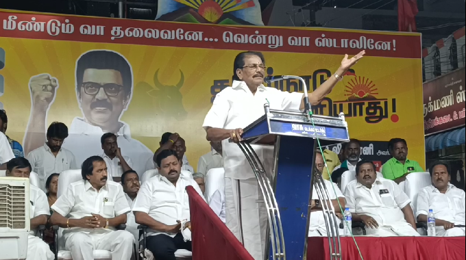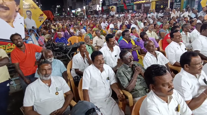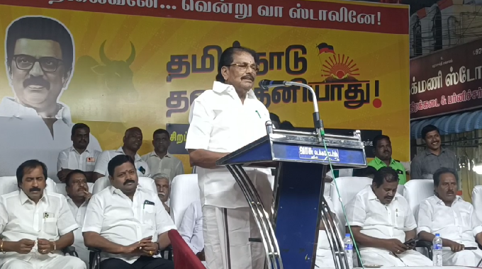 திராவிட முன்னேற்றக் கழகம் சார்பில் தமிழகம் தலைகுனியாது என்ற தலைப்பில் மாநிலம் முழுவதும் சட்டமன்ற தொகுதிகளில் பொதுக் கூட்டங்கள் நடைபெற்ற வருகிறது. அதன் அடிப்படையில் ஸ்ரீவில்லிபுத்தூர் வடக்கு ரத வீதியில் இன்று நடைபெற்ற பொதுக்கூட்டத்தில் தமிழக பாடநூல் கழக தலைவர் திண்டுக்கல்