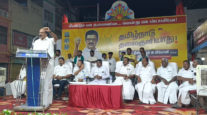 மகளிர் உரிமைத் தொகையை அரியருடன் உரிமையாக பெண்கள் கேட்பதாக ஸ்ரீவில்லிபுத்தூரில் அமைச்சர் பேசியதால் கலகலப்பு ஏற்பட்டது. கூட்டத்தில் பேசிய திண்டுக்கல் லியோனி தமிழகத்தில் உள்ள தேசிய ஜனநாயக கூட்டணி துரோகத்தை மையமாக வைத்து அமைக்கப்பட்ட கூட்டணி என விமர்சனம் செய்தார்.