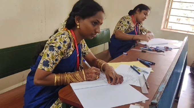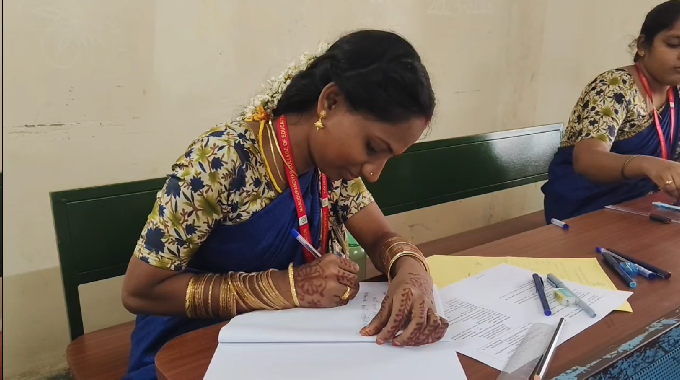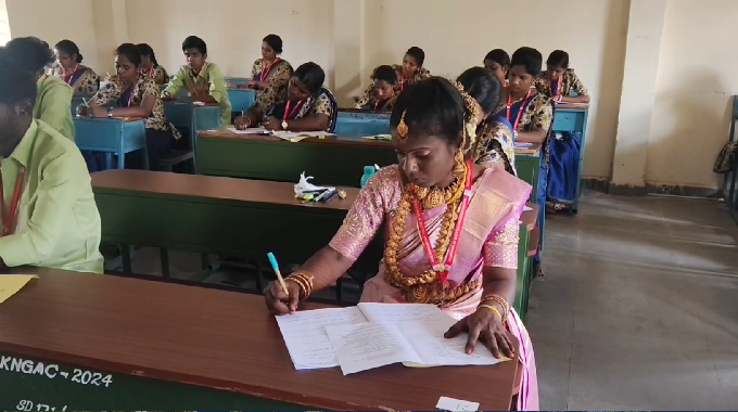 தேர்வுகள் எழுதிய புதுமண பெண்கள்