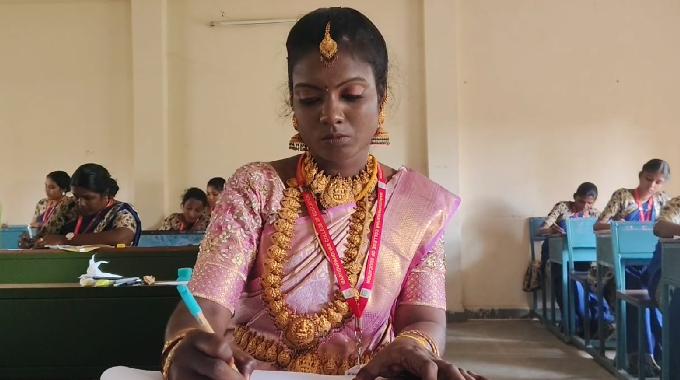 மணக்கோலத்தில் தேர்வு எழுதிய சத்யகீதா