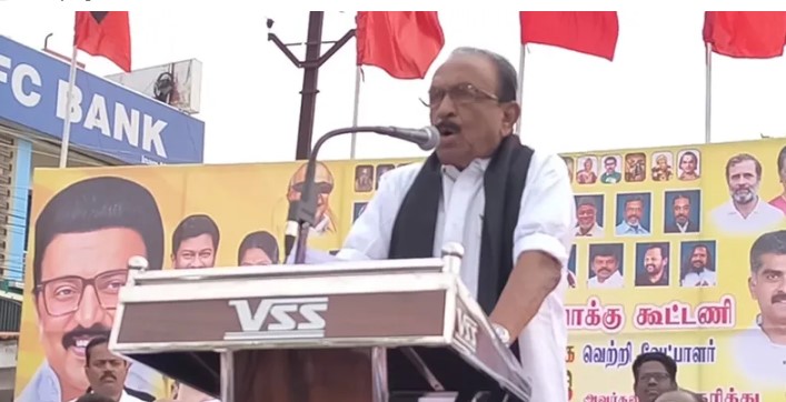 92 வயது நிறைந்த திராவிடர் கழகத் தலைவர் ஆசிரியர் அய்யா கி.வீரமணி கடும் வெயிலிலும் பரப்புரை செய்கிறார்.