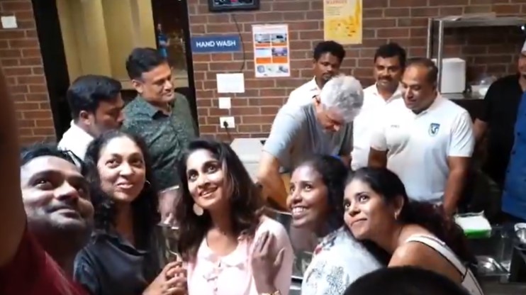 அஜித் சமையலில் பிசியாக இருந்தபோது, செல்ஃபிக்கு போஸ் கொடுக்கச் சொன்னார் ஷாலினி. அஜித் இங்க பாருன்னு, ஷாலினி சொல்ல அவரோ எங்கனு கேட்க, அங்கிருந்தவர்கள், கலகலப்பாக மாறினர்.