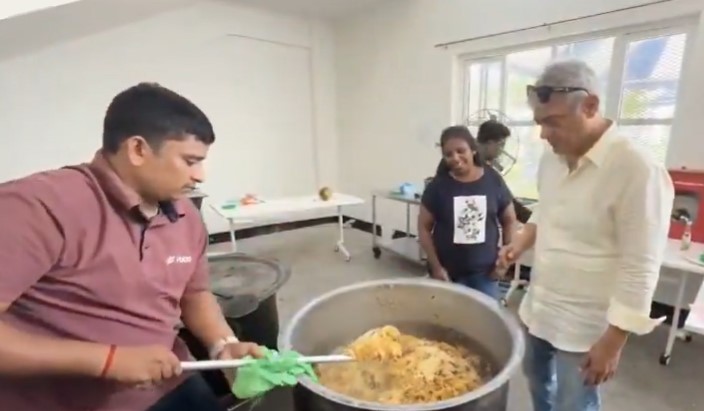 கார் பந்தயங்களுக்காக நாடு நாடாக சென்று கொண்டிருக்கும் அஜித் குமார், தற்போது ஓய்வில் இருக்கும்போது கால்பந்தாட்ட கிளப்புக்காக பிரியாணி சமைத்துக் கொடுத்து அசத்தி உள்ளார்.