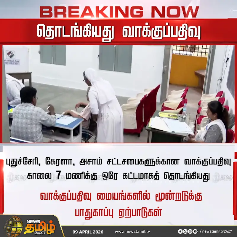 கேரளா, அஸ்ஸாம், புதுச்சேரியில் இன்று சட்டப்பேரவை தேர்தல்