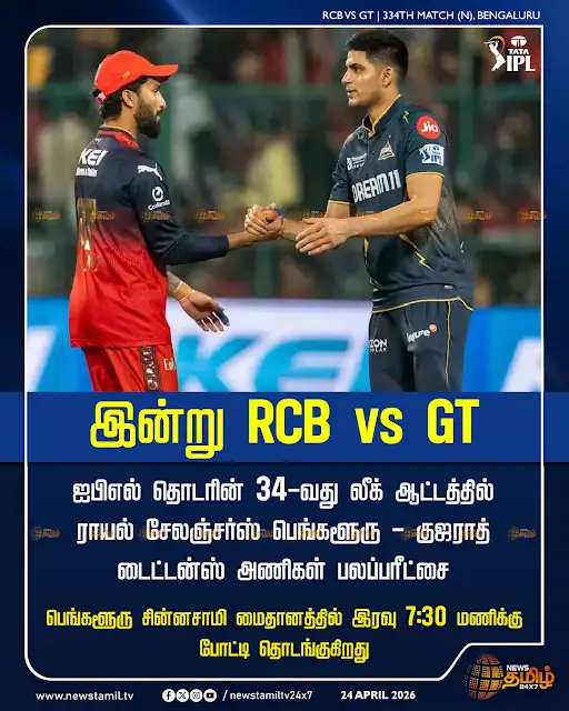 ஐ.பி.எல். போட்டியில் இன்று ஏப்ரல் 24ஆம் தேதி, ராயல் சேலஞ்சர்ஸ் பெங்களூரு அணியும், குஜராத் டைட்டன்ஸ் அணியும் மோதுகின்றன.