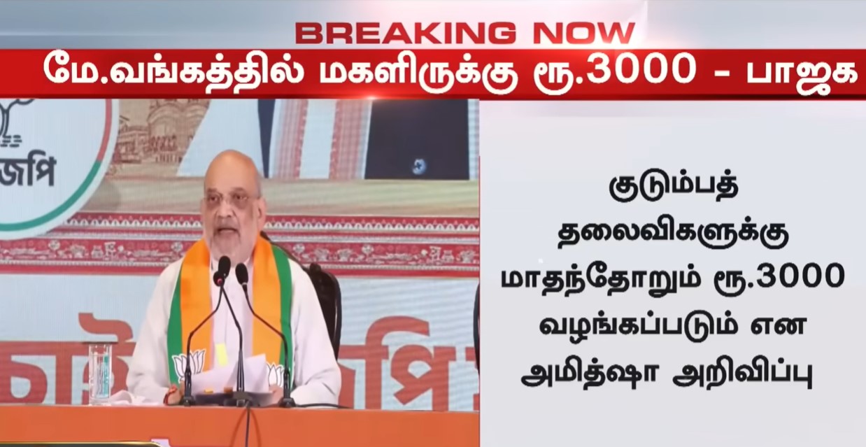 பெண்களுக்கு மாதம் ரூ.3,000 வழங்கப்படும் என்று பாஜக தேர்தல் வாக்குறுதி அளித்துள்ளது.
