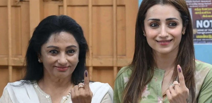 ஆழ்வார்பேட்டை வாக்குச்சாவடி மையத்தில் கமல்ஹாசன், அவரது மகள் ஸ்ருதிஹாசன், தனுஷ், அர்ஜூன், இயக்குநர் மிஷ்கின், ஜெயம் ரவி ஆகியோர் வாக்குப்பதிவு செய்த நிலையில் நடிகை த்ரிஷாவும் தனது தாயுடன் அந்த வாக்குச்சாவடியில் வாக்கினை பதிவு செய்தார். தனது கை விரலில் வைக்கப்பட்ட மையை காட்டி புன்னகையுடன் போஸ் கொடுத்த த்ரிஷாவிடம், இந்த தேர்தலில் மாற்றம் நிகழுமா? என செய்தியாளர்கள் கேட்டபோது அதற்கு எந்த பதிலும் சொல்லாமல் அவர் காரில் கிளம்பி சென்றார்.