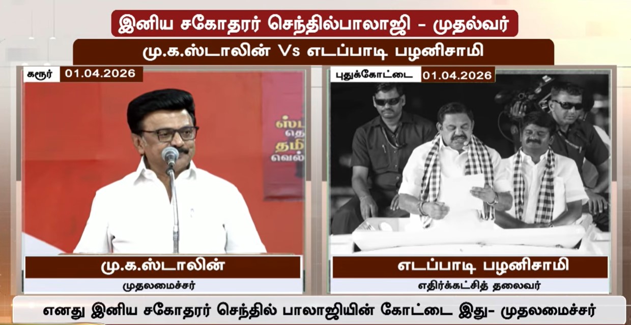 கரூரை பொறுத்தவரை எனக்கு எந்த கவலையும் இல்லை. எனது இனிய சகோதரர் செந்தில் பாலாஜியின் கோட்டை இது. கரூர் மாவட்டத்தில் திமுகவின் வெற்றி 100% உறுதி ஆகி உள்ளது. கரூர் வெற்றியை உறுதி செய்ததால் கோவைக்கு செந்தில்பாலாஜியை அனுப்பினேன். யாரும் கவலைப்பட வேண்டாம். கோவை புகுந்த வீடு, சோதனைகளை தாண்டி சாதனை படைப்பவர் செந்தில்பாலாஜி.