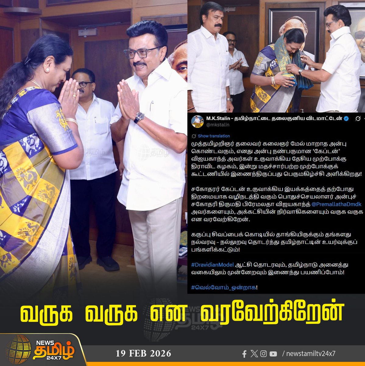 சகோதரர் கேப்டன் உருவாக்கிய இயக்கத்தைத் தற்போது திறமையாக வழிநடத்தி வரும் பொதுச்செயலாளர் அன்புச் சகோதரி திருமதி பிரேமலதா விஜயகாந்த் @PremallathaDmdk அவர்களையும், அக்கட்சியின் நிர்வாகிகளையும் வருக வருக என வரவேற்கிறேன்.