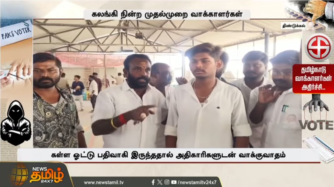 திண்டுக்கல் மாநகராட்சி 128ஆவது வாக்குச்சாவடி மையத்தில் வாக்களிக்க சென்ற முதல் தலைமுறை வாக்காளர் துவாரகேஷ், தனது வாக்கு ஏற்கனவே பதிவு செய்யப்பட்டிருந்ததால் விரக்தி அடைந்தார். இதனால் ஆத்திரமடைந்த அவரது உறவினர்கள், வாக்குச்சாவடி அதிகாரிகளுடன் வாக்குவாதத்தில் ஈடுபடவே, டெண்டர் முறையில் வாக்கு செலுத்த அனுமதிக்கப்பட்டார்.