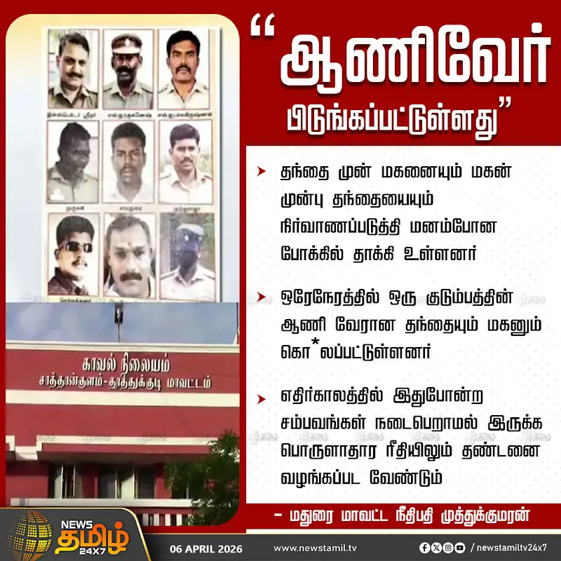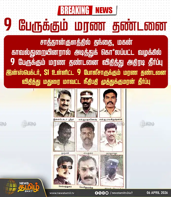 இன்ஸ்பெக்டர், SI உள்ளிட்ட 9 போலீசாருக்கும் மரண தண்டனை விதித்து மதுரை மாவட்ட நீதிபதி முத்துக்குமரன் தீா்ப்பு